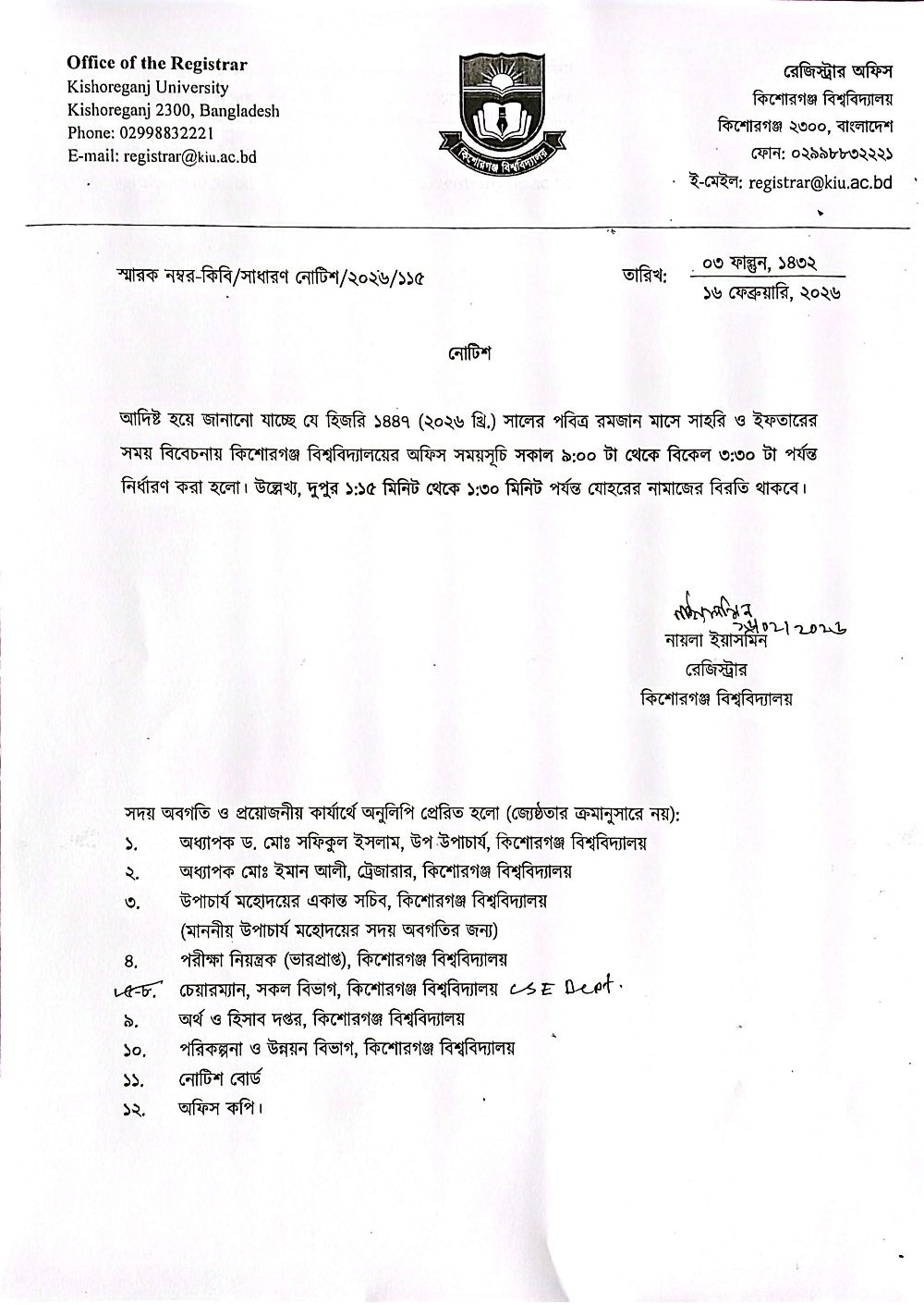 About Kishoreganj University
